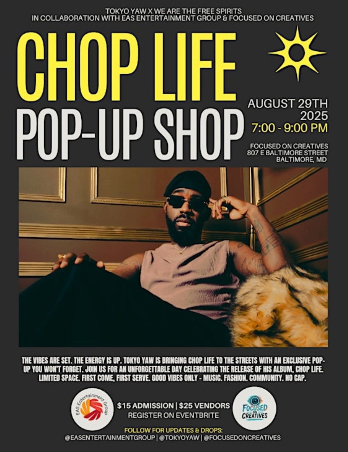 FOLLOW US ON SOCIAL MEDIA @EASENTERTAINMENTGROUP & FOLLOW US ON EVENTBRITE. SUBSCRIBE